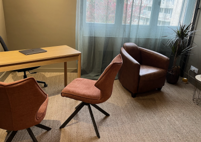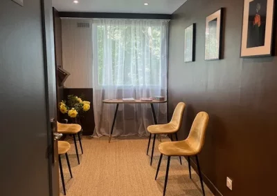 A l’entrée de l’immeuble, vous sonnez à l’interface « Les Odyssées ». Vous pourrez entrer et monter jusqu’au cabinet. Entrez sans sonner. Vous pourrez patienter dans la salle d’attente. Des toilettes sont à votre disposition.