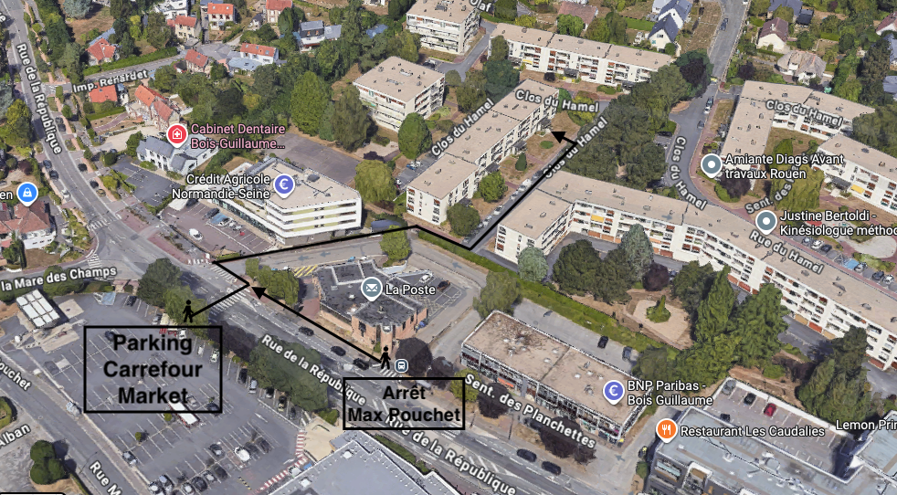 • Lignes F1 : arrêt Mairie de Bois-Guillaume.